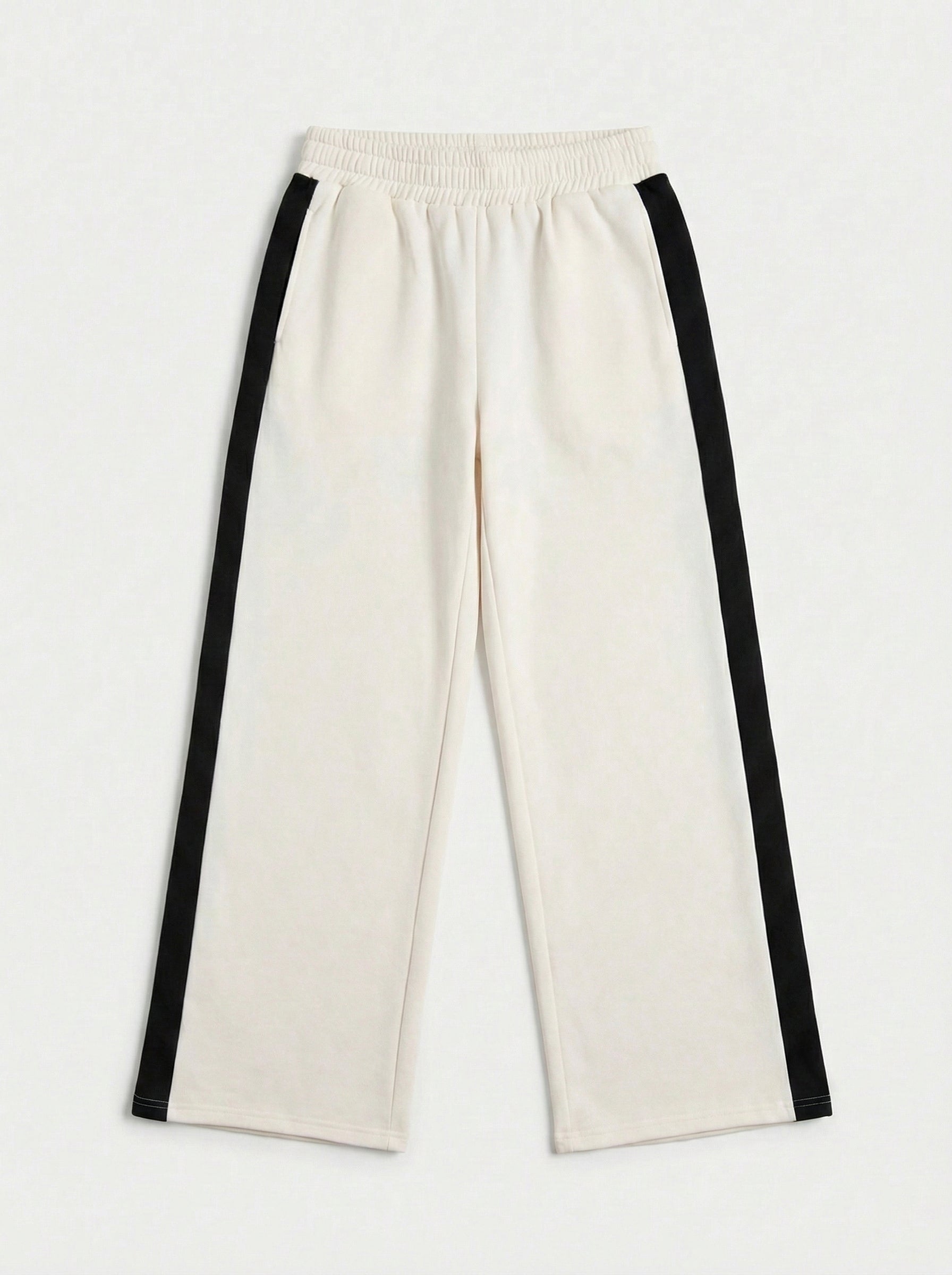 Regular-length, straight-fit bottoms with a mid-rise waist and elasticated waistband. Made from soft knitted cotton fabric with a clean, solid finish. Designed with two functional pockets for everyday comfort.