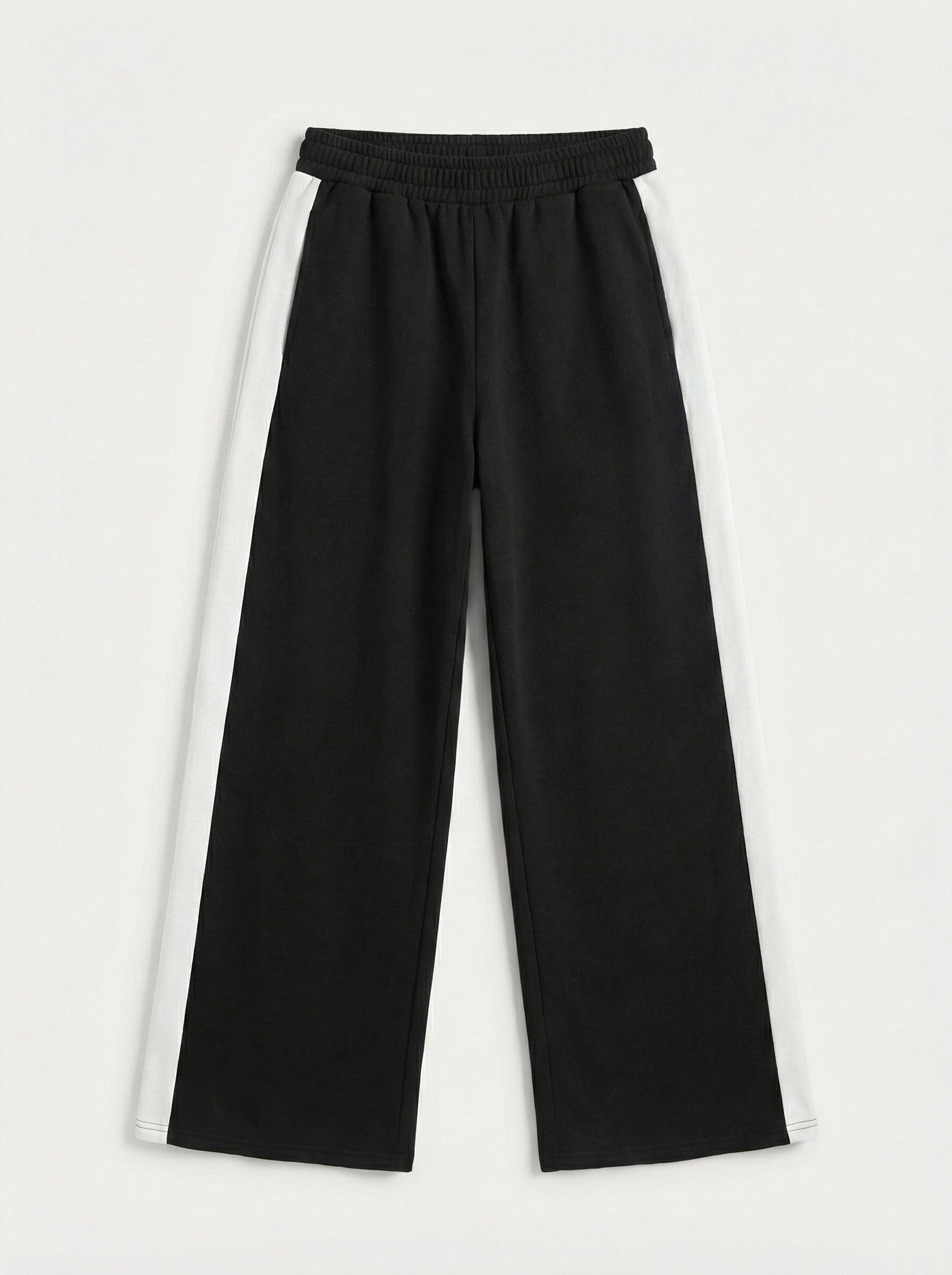 Regular-length, straight-fit bottoms with a mid-rise waist and elasticated waistband. Made from soft knitted cotton fabric with a clean, solid finish. Designed with two functional pockets for everyday comfort.